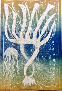 Following on from the successful Aberystwyth printmaker/IBERS Miscanthus exhibition in 2024 we are proud to announce this year’s collaboration on the theme of the mid Wales coast, with a focus on seaweed.